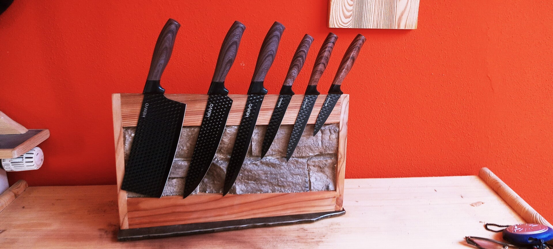 Außer der genialen Optik bietet dieser Messerblock Platz für deine Messer, sorgt für Ordnung und Übersichtlichkeit beim Kochen